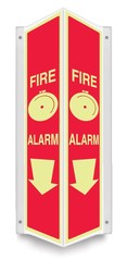 90 DEGREE SIGNS - FIRE ALARM (W/GRAPHIC) (ARROW) | MATERIAL: Lumi-Glow Plastic, STYLE: 90D, SIZE: 24" x 4" Panel |
